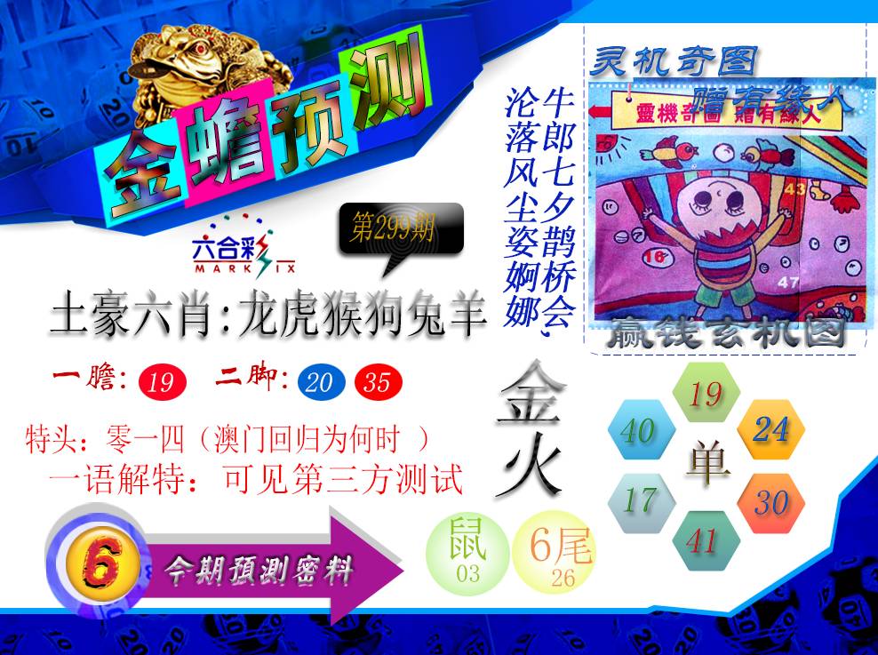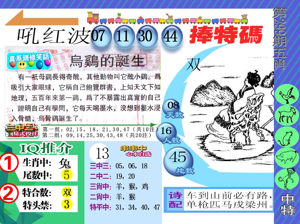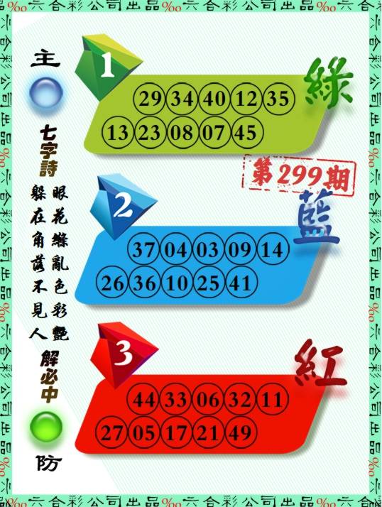299期正版天机诗 劝君凡事须注意 。送:牛马兔猴虎。 推荐:4 2 1头+蓝红波(开?00) |